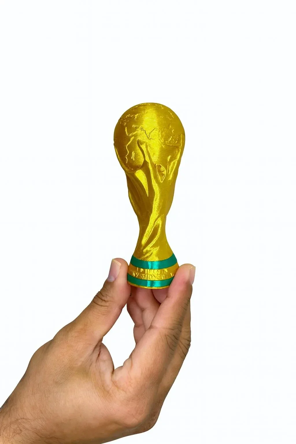 Designed with precision and crafted using high-quality, durable filament, this golden mini trophy showcases detailed contours inspired by the iconic original. Its lightweight yet sturdy build makes it a perfect collectible for soccer fans, players, coaches, and sports lovers around the world.